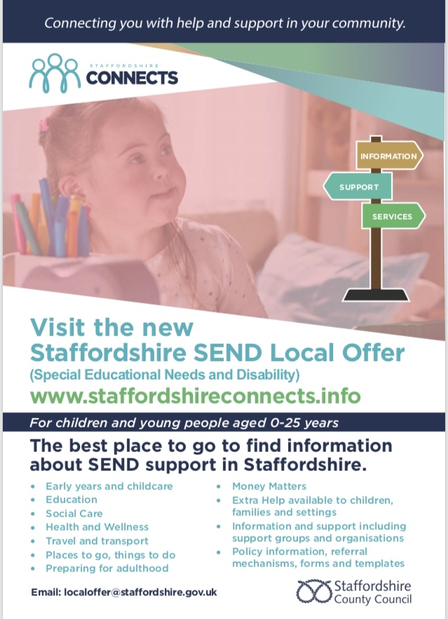 Staffordshire’s local offer provides information and services for children and young people aged 0-25 with special educational needs and disabilities (SEND) and their families. The Local Offer website aims to help families by gathering the information that they need to know in order to make informed choices about the support they receive.